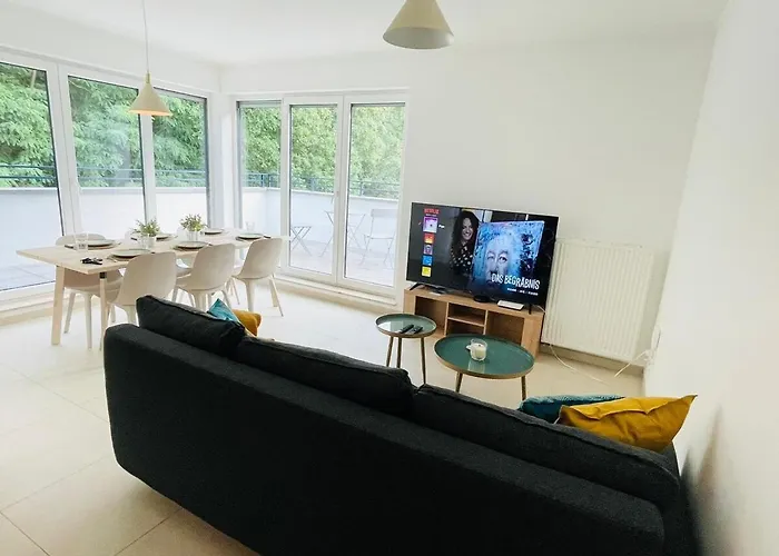 A 100 m²-es Sunny 2Br Home W Private Terrace&Secure Parking Luxemburg apartman Luxemburg Kirchberg körzetében található, és nagyjából egy 20 perces sétára fekszik olyan kulturális látnivalóktól, mint a János Nagyherceg Modern Művészeti Múzeum. Az apartman modern szolgáltatásokat kínál, például Wi-Fi-t, valamint olyan alapvető dolgokat, mint az ingyenes privát parkoló az autóval utazók számára.
